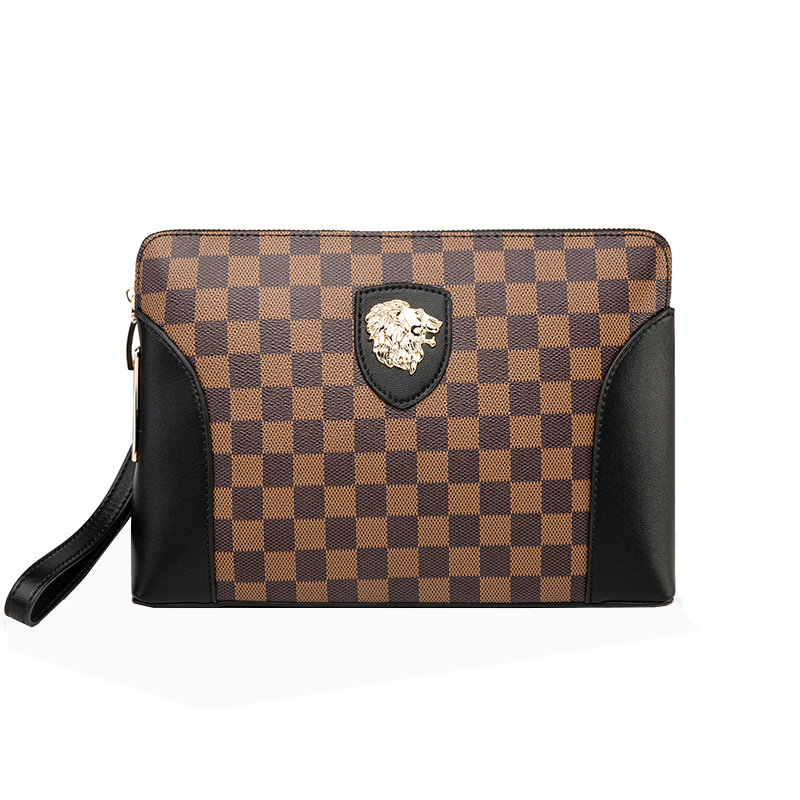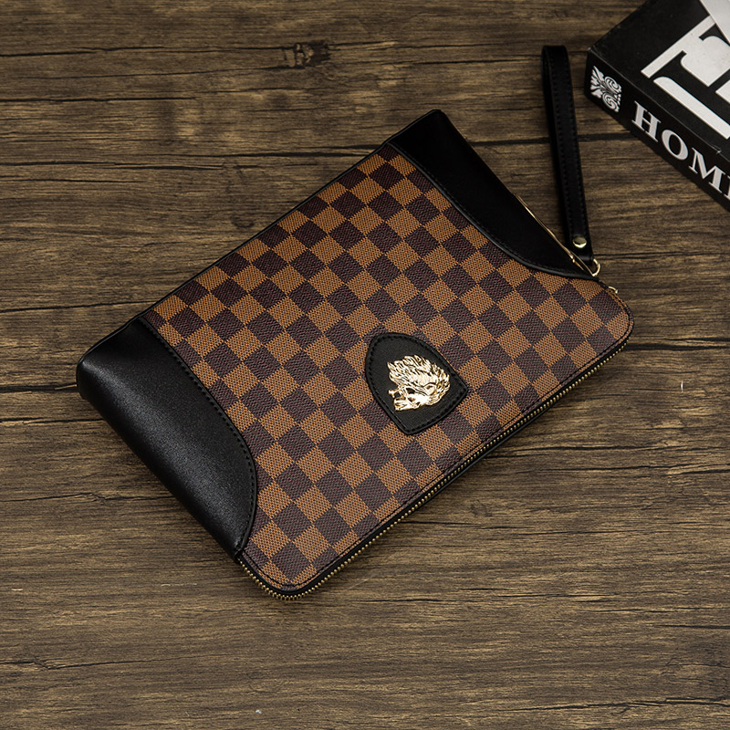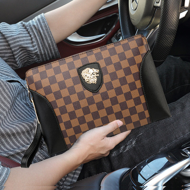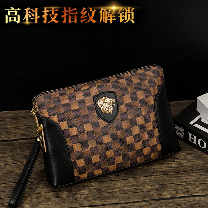 Handbags Male genuine leather Large capacity Tide Cards Fingerprint Unlock Hand Grab Bag Luxury Brands Fashion Plaid Clips Hand Grip Bag
