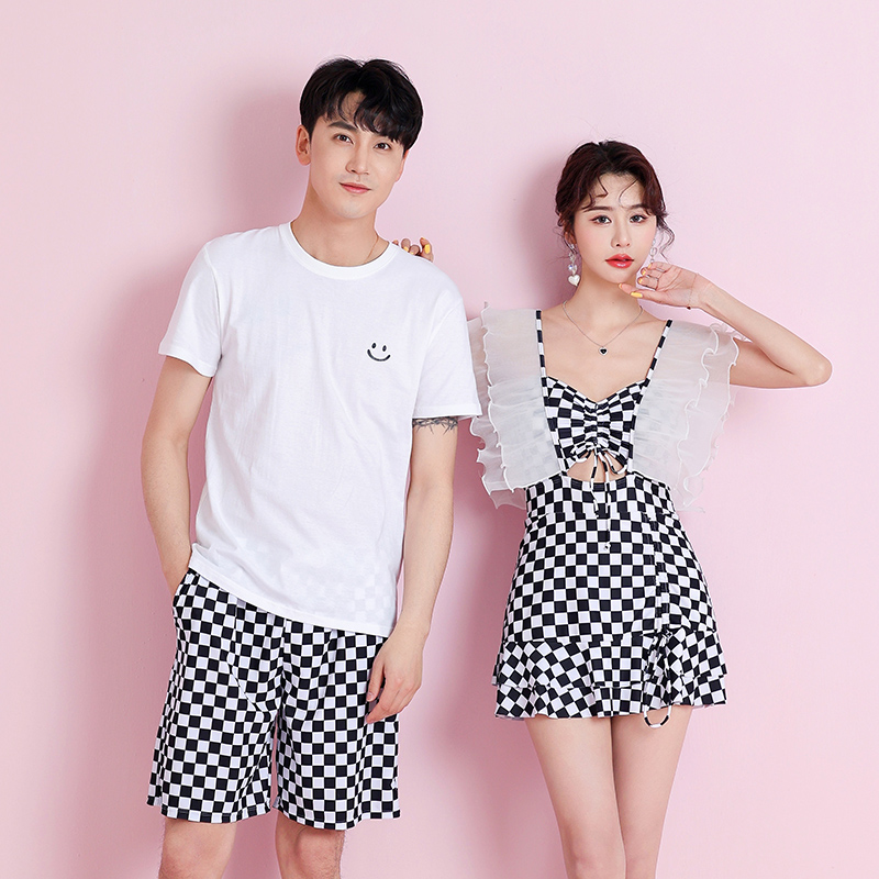 Couple Swimsuit 2023 New couple's beach sexy swimsuit mesh red wind shading hot spring swimsuit