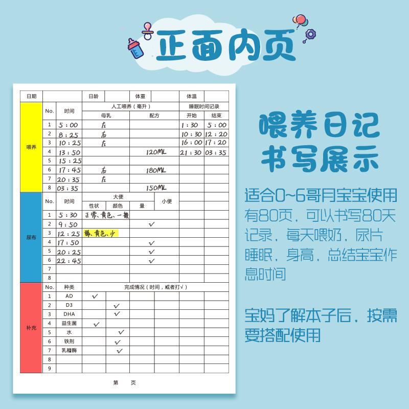 Feeding Diary Baby Growth Developmental Records This Child Children's Record Books Baby Life Records Daily Breastfeeding Record Books Notebook BB Growth Archives Baby Interest-bearing Record Diary ben-Taobao
