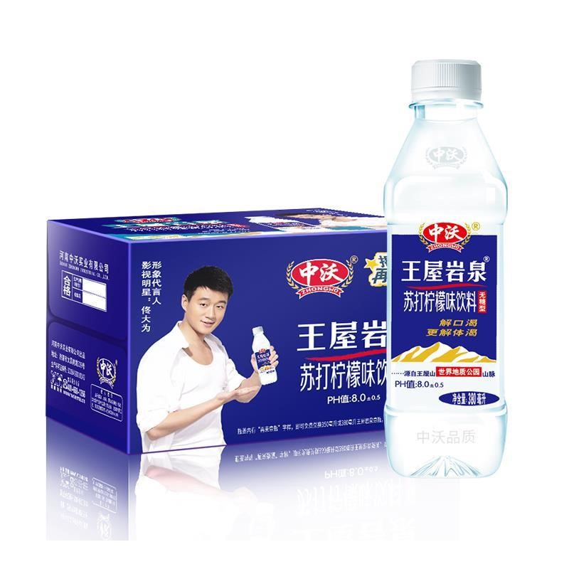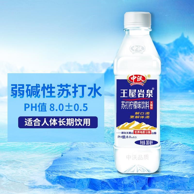 Zhongwo 380ml Wangwu Yanquan soda lemon-flavored mineral water weak alkaline beverage drinking water 24 bottles