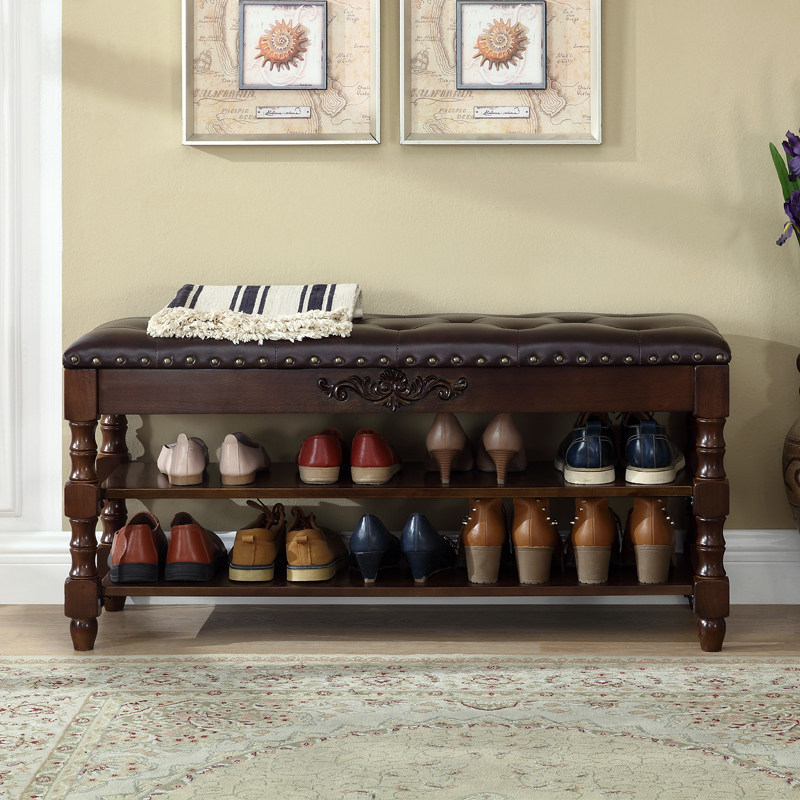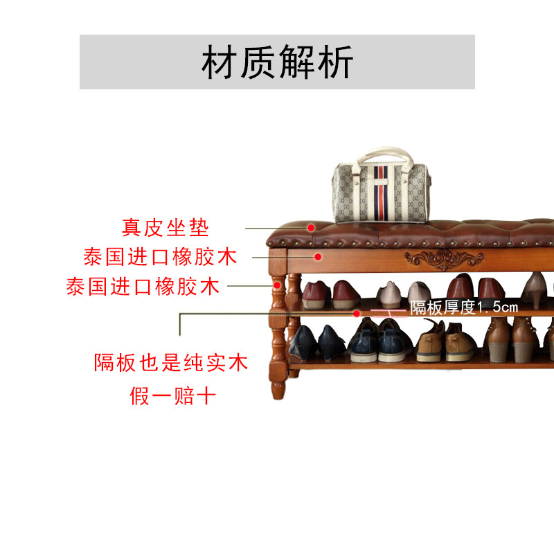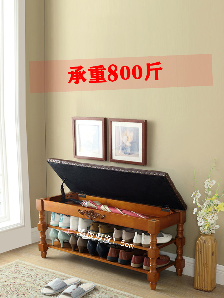 Genuine leather full solid wood changing shoes stool into door opening home Entrance Shoe rack Sitting Shoes Cabinet European and American style wearing shoes stool integrated-Taobao