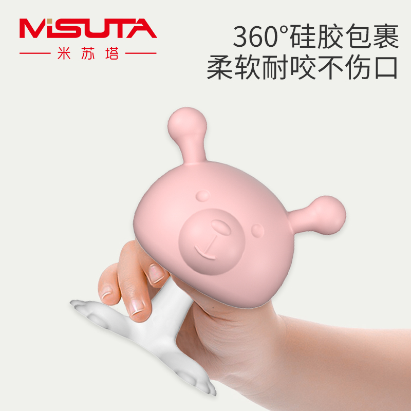 Misuta baby small mushroom bites solid teeth machine can be boiled with silicone gel grinding stick baby anti-eat hand to appease toy music
