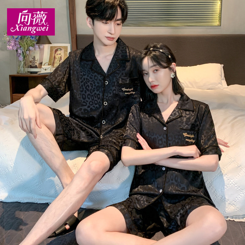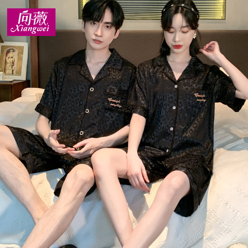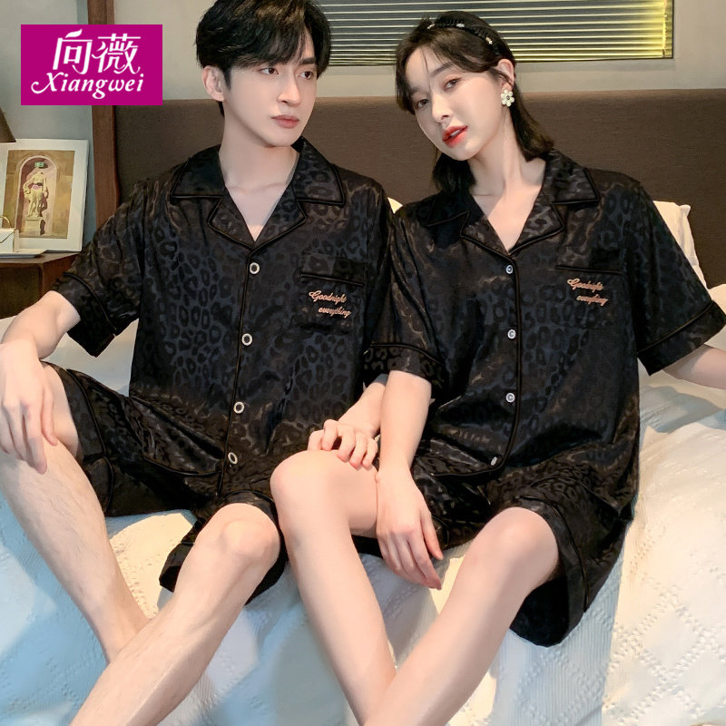 Couple pajamas women's summer ice silk short-sleeved thin satin silk two-piece suit can be worn outside men's Korean style home clothes