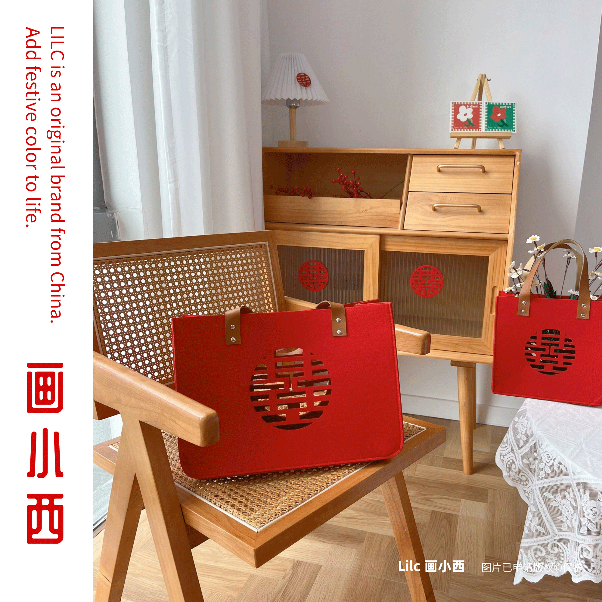 Lilc's home wedding gift tote bag with hand gift wedding bag red festive storage bag vibrato little red book explosion
