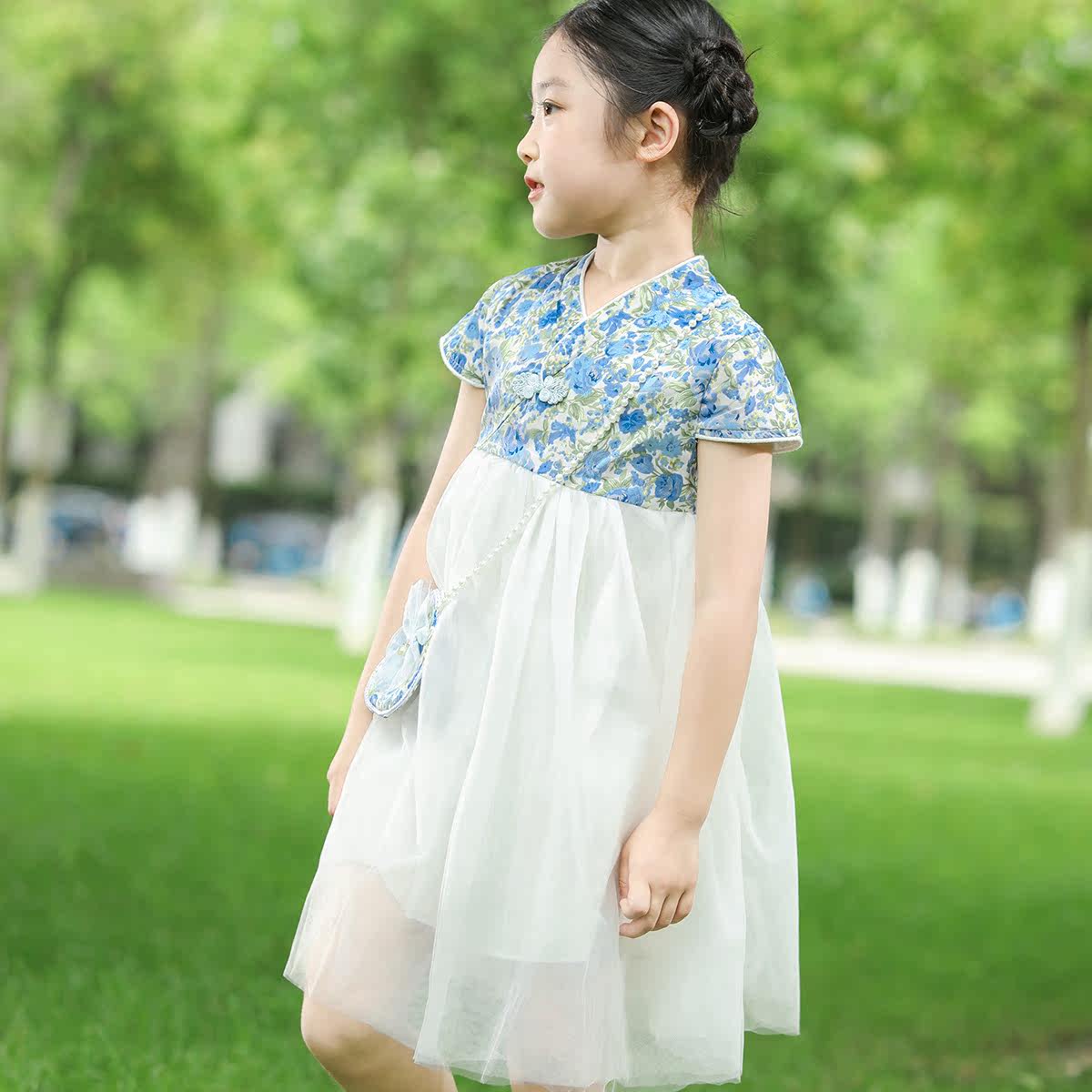 Little Tiger Patty Girls Floral Skirt Hanfu Dress 2022 Summer New Children's Baby Chinese Style Mesh Skirt