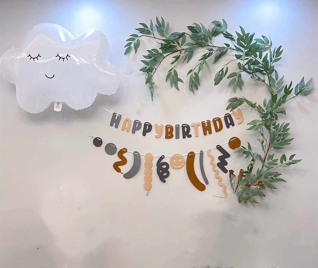 Cloud Balloon Balloon Wire Background A set of no tool simulation tree branches 1 7m or so flag Cute roll wood Happy Birthday Wall with yellow numbers 0-9 of one of them note brown numbers 0