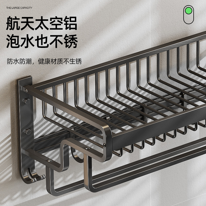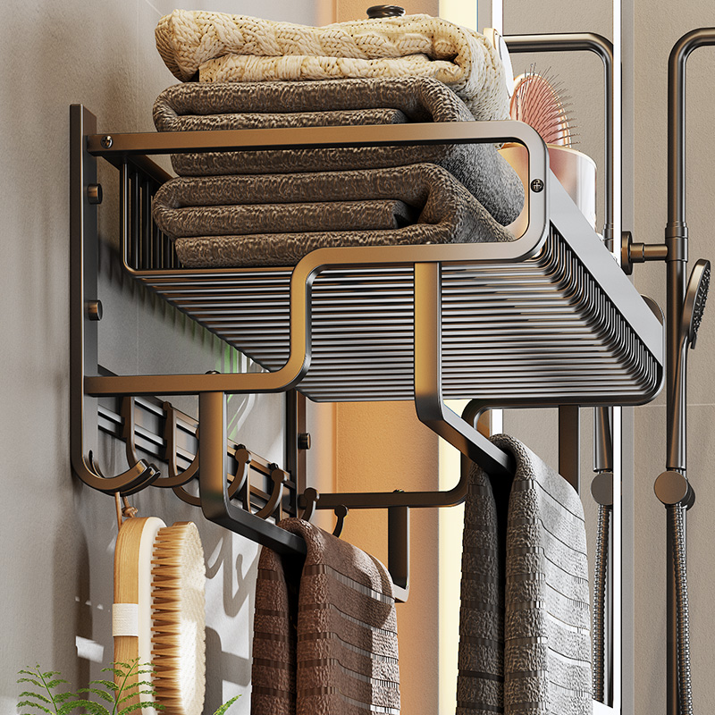 Toilet wool towel rack free of punching Bathrooms Toilet Shelf Wall-mounted Clothes Contained in Space Aluminum Black Bath Towels-Taobao