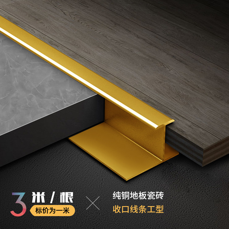 Pure copper word Tt waist line floor pressing bar threshold tile sealing toilet decorative separation bar