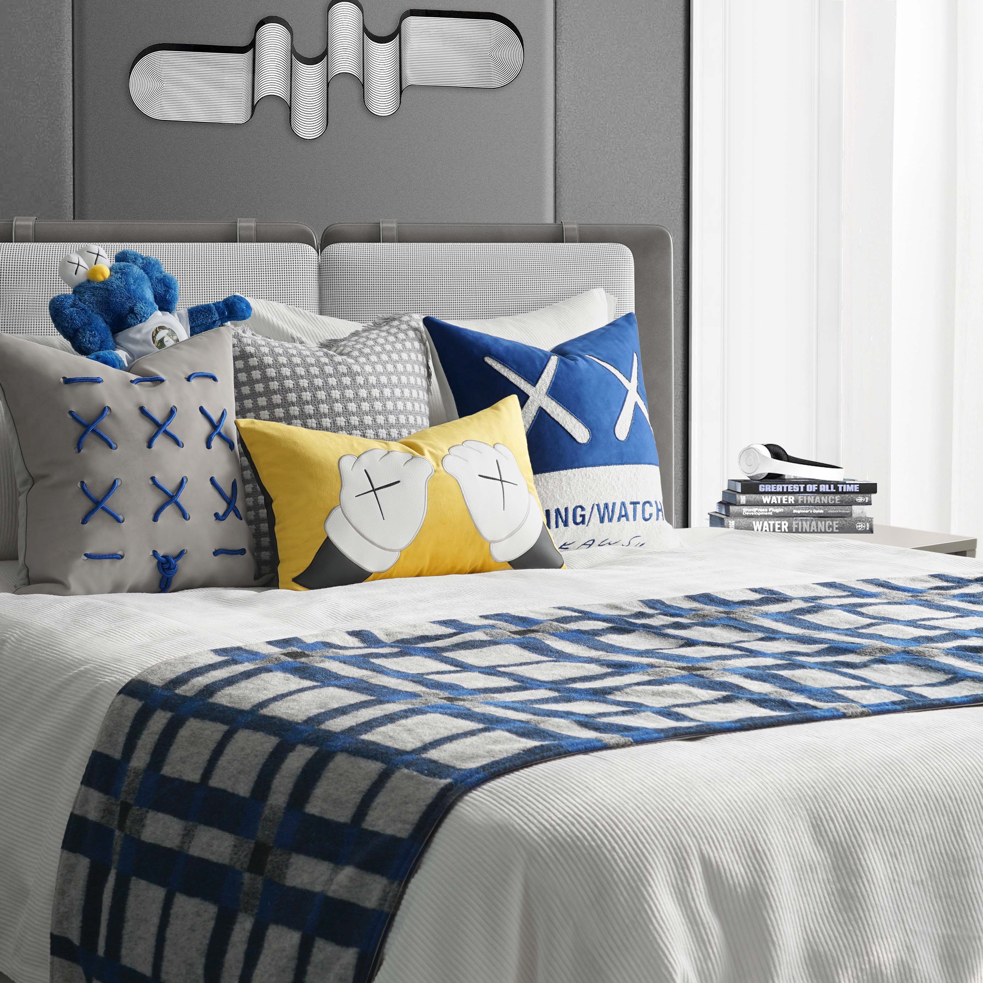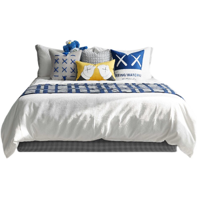 Boys Yellow Blue High-end Exhibition Room Bed Light Luxury Software Sample Room with Carpet Pillow