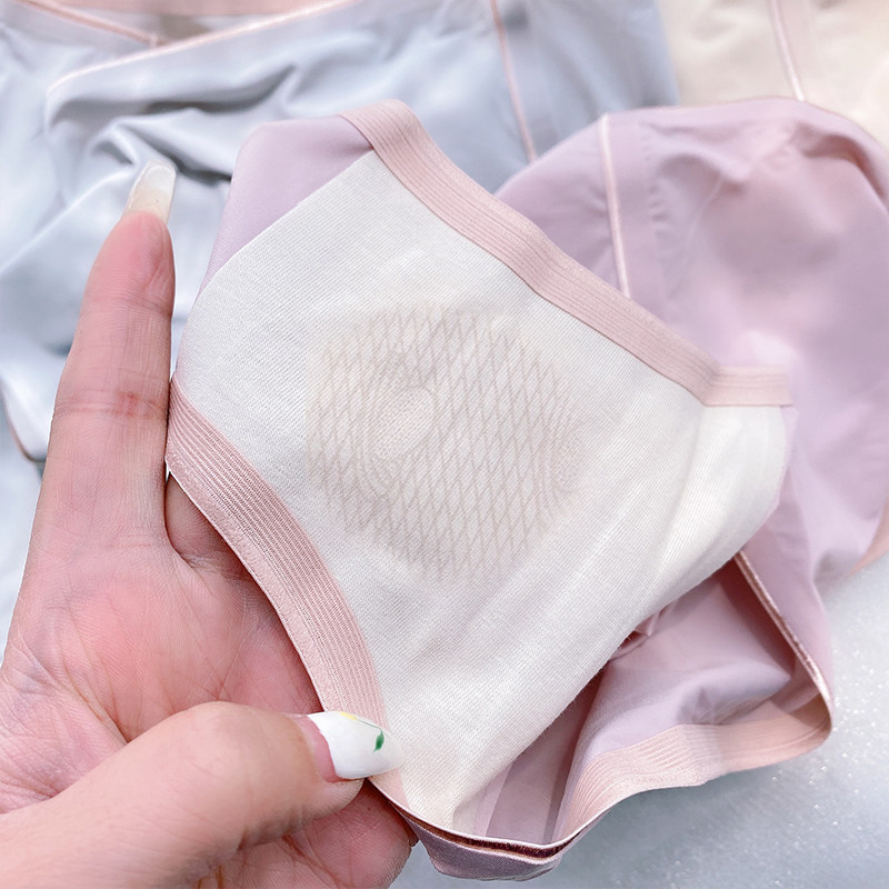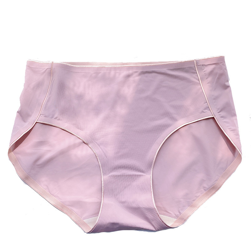 Ice silk large underpants 200 kg fat mm one slice of mid - waist inhibited silk inhibition crotch lady summer