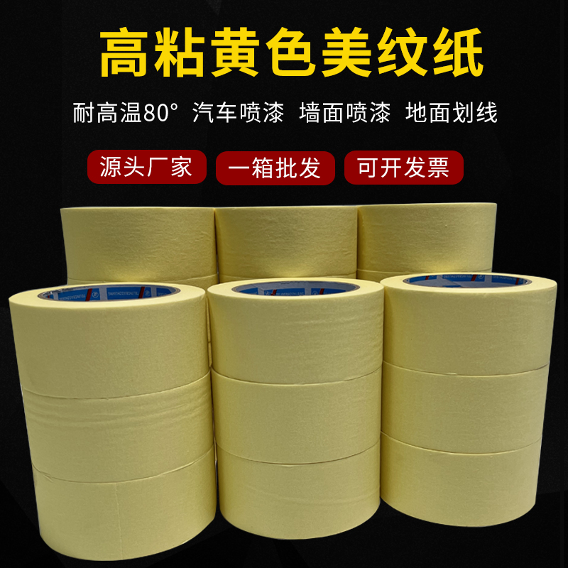 Yellow high sticky texture paper tape car spray paint exterior wall real stone paint color separation paper beauty sewing paper tape wholesale