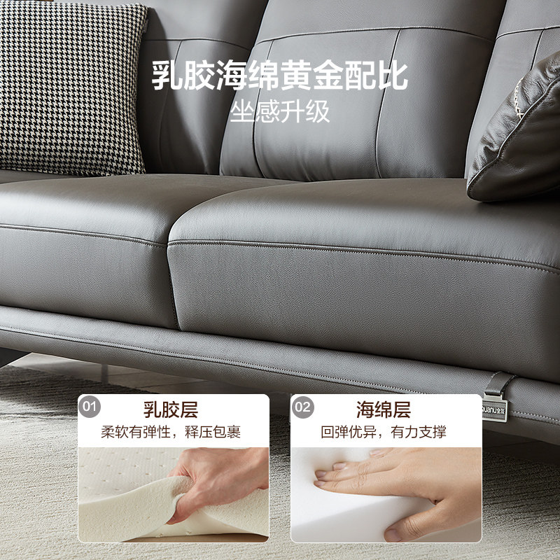 Full Friend Home Real Leather Sofa Head Layer Cow Leather Living Room Modern Minima Light Extravagant Sofa small family Type of furniture 102663-Taobao