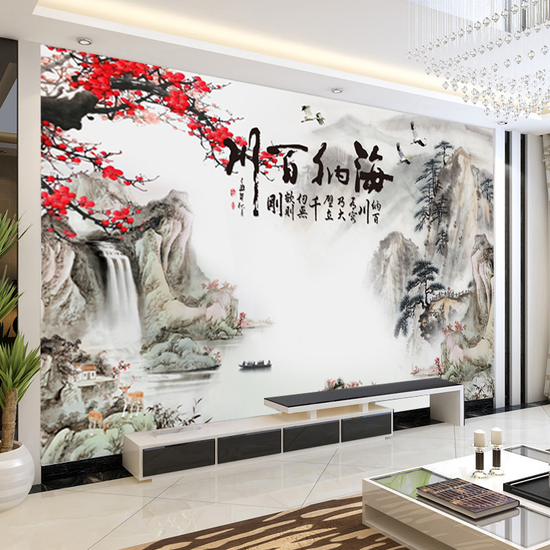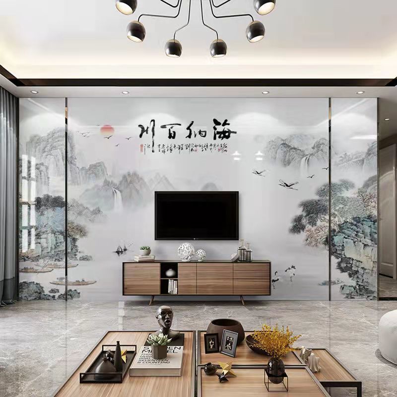 TV Background wall Bamboo wood fiber board living room mountain and water splicing integrated wall board 3D atmospheric film wall board customization