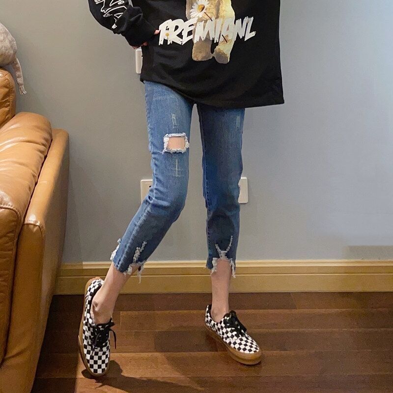 Pregnant woman jeans summer outside wearing fashion big code 70% Thin Summer Thin straight cylinder personality Breathout smoke pipe pants-Taobao