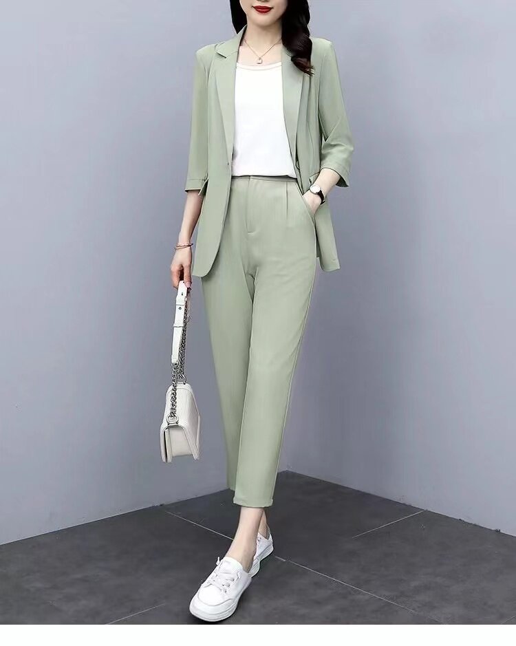Small suit suit female summer Korean version of the fat sister casual fashion temperament large size professional wear dress interview suit
