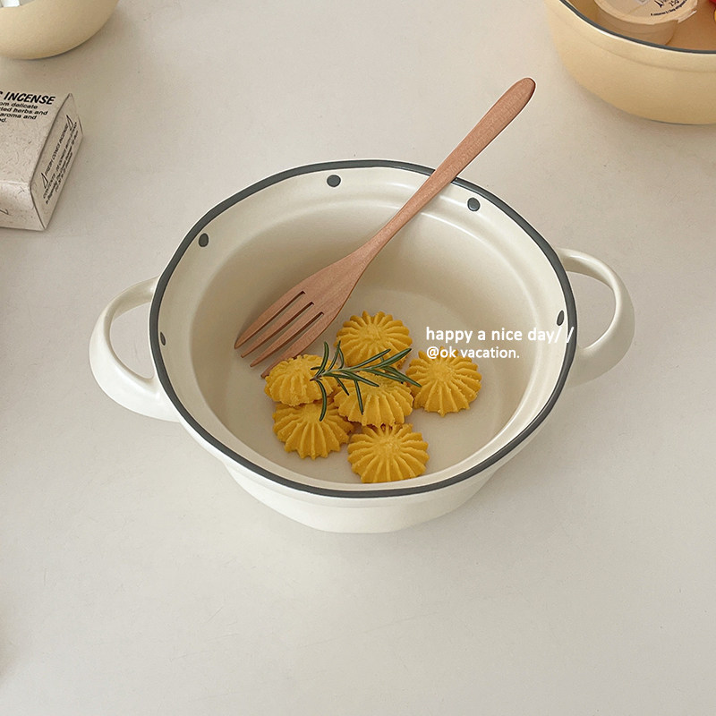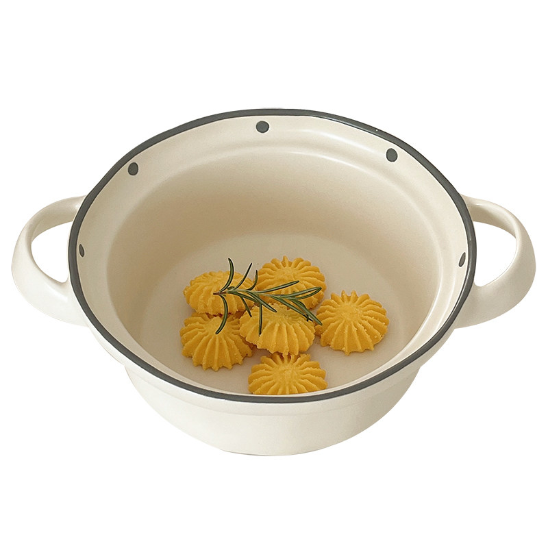 ins wind frosted polo dot double ear bowl ceramic large soup bowl foam noodle snail powder bowl home Dormitory One Food Cutlery