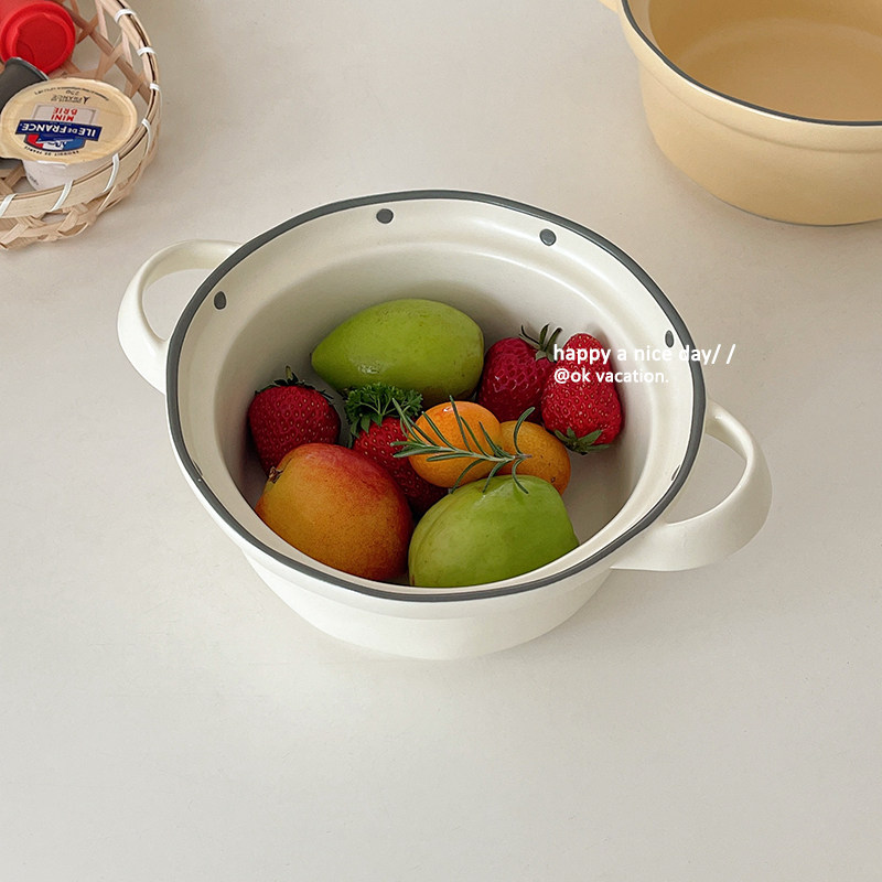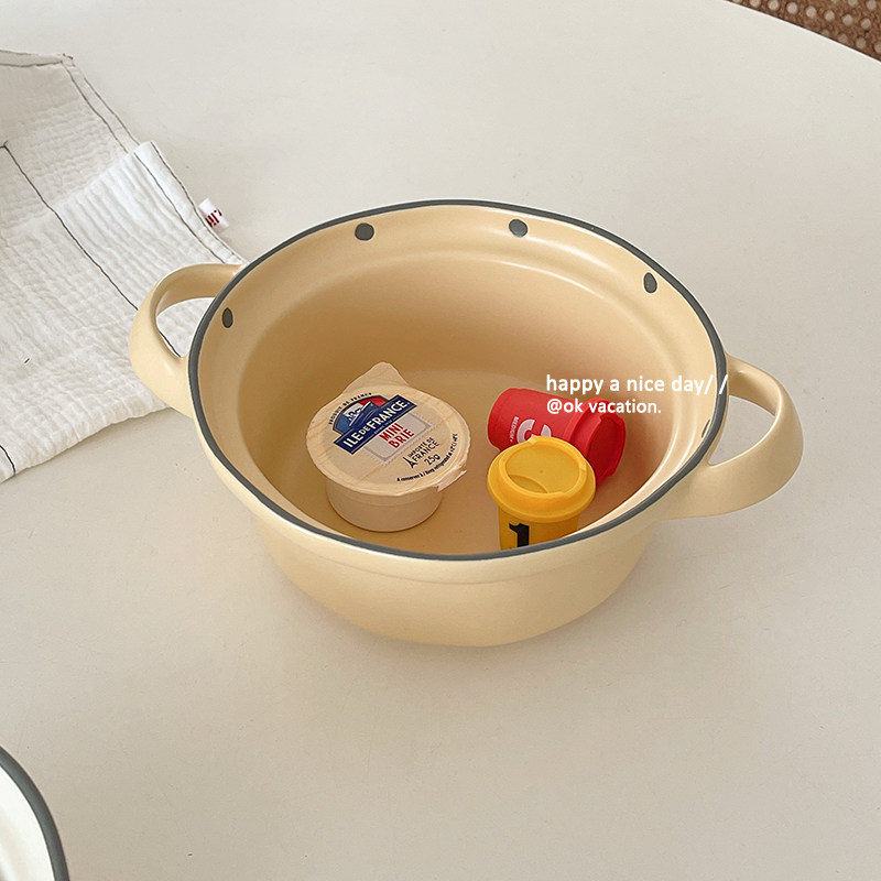 Milk white double ear soup bowl 7 inch milk yellow double ear soup bowl 7 inch (milk white milk yellow) double ear soup bowl 7 inch