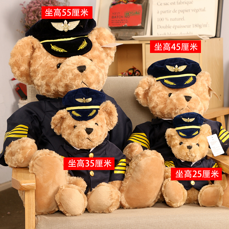 Captain Bear Dude Pilot Teddy Bear Toy Bear Police Air Miss Airline Gift