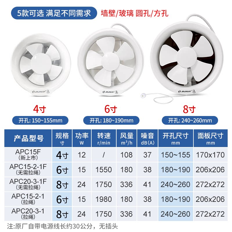 Jinling powerful mute powder room exhaust fan household kitchen fume exhaust fan round toilet exhaust ventilation fan