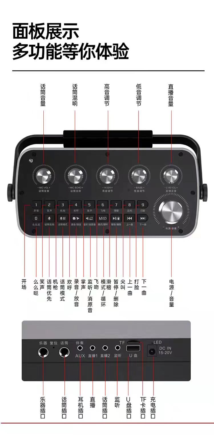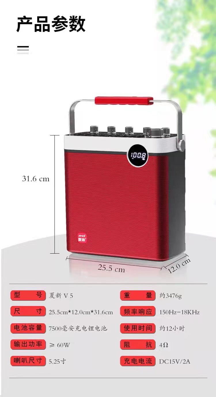 Amoi V5 net red live portable Bluetooth speaker dazzle dance outdoor multi-functional sound card party audio with dual microphones