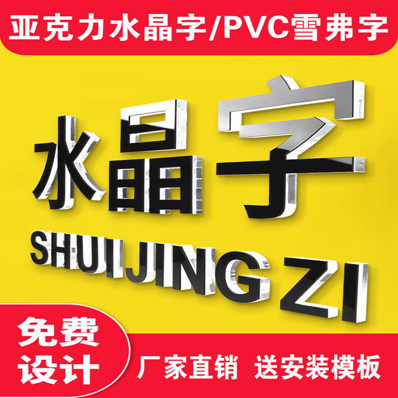 Crystal word set to make PVC word set as company front image wall logo custom acrylic word custom snowfer board word engraving pvc plate with acrylic character