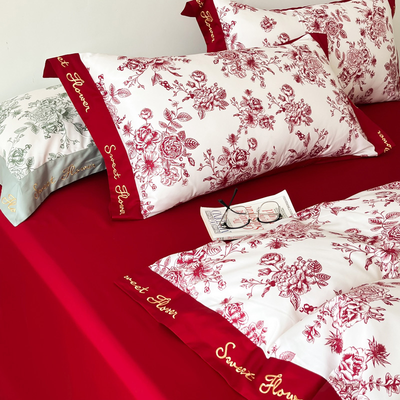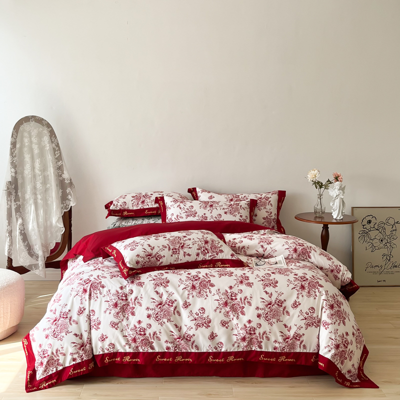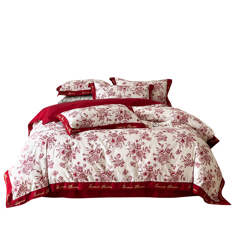 Fuana simple long-staple cotton wedding four-piece set cotton big red duvet cover cotton wedding bedding wedding