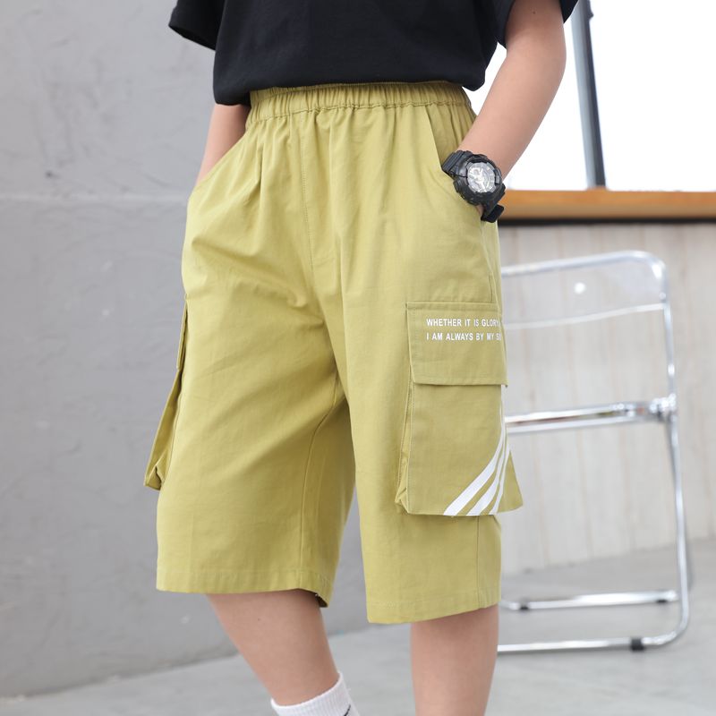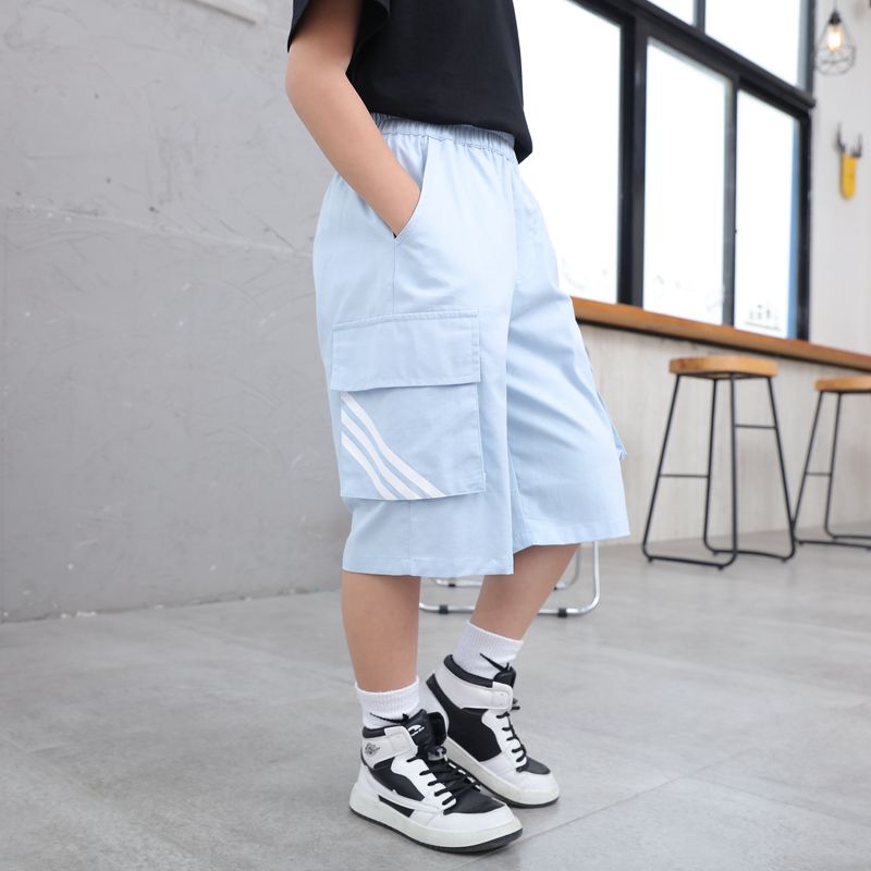 2022 summer new middle-aged children's cropped pants loose cotton sports pants youth breathable casual boy shorts