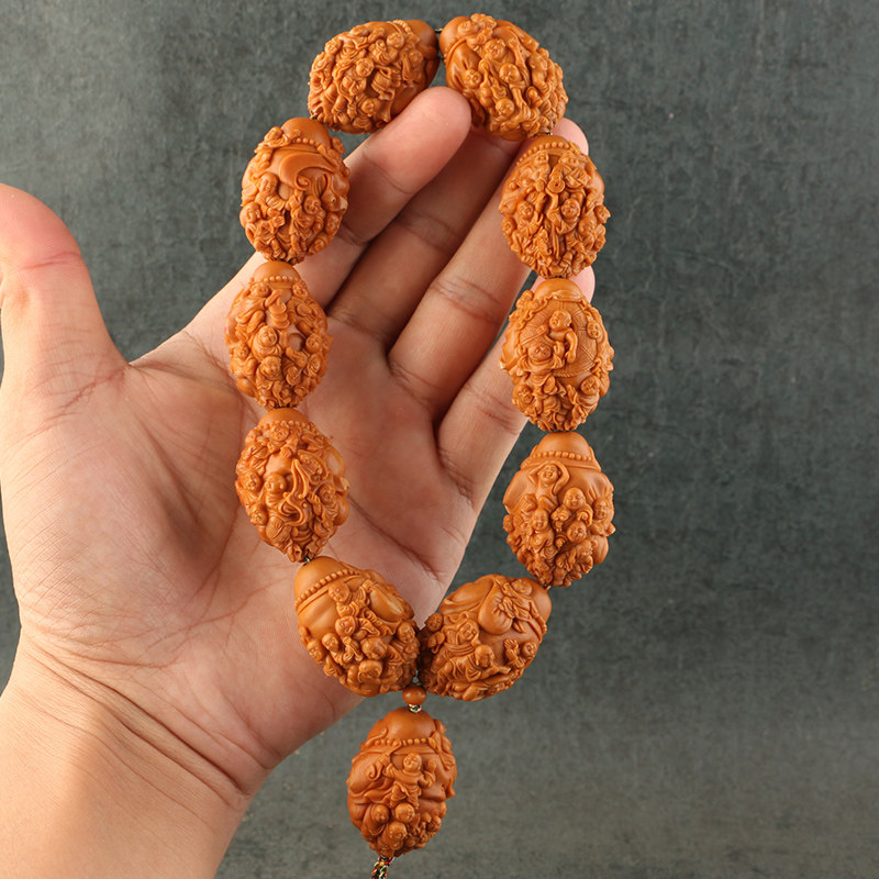 2 5x3 3cm (100 son Millis) Liu Xiaoqin works olive nuclear sculpture triple flower old oil nuclear super full bodied nuclear
