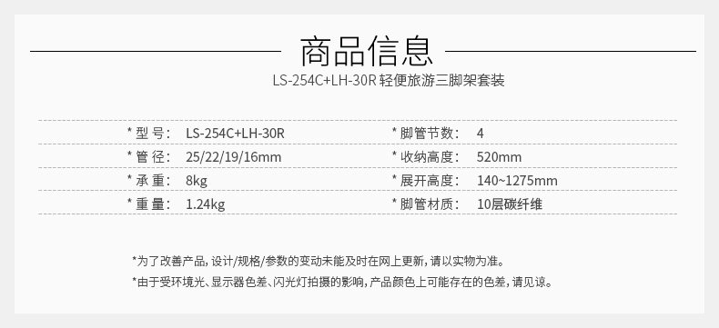 Leitu Leofoto LS-254C LH-30R single-eye micro-single-eye camera camera portable carbon fiber tripod without central axis