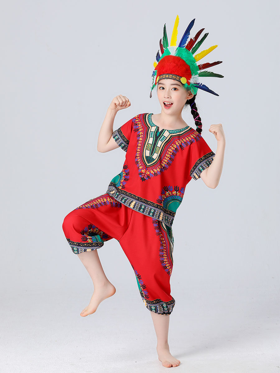 Children's African Drum Costumes Kindergarten Tambourine Set Savage Indian Dance Performance Costumes