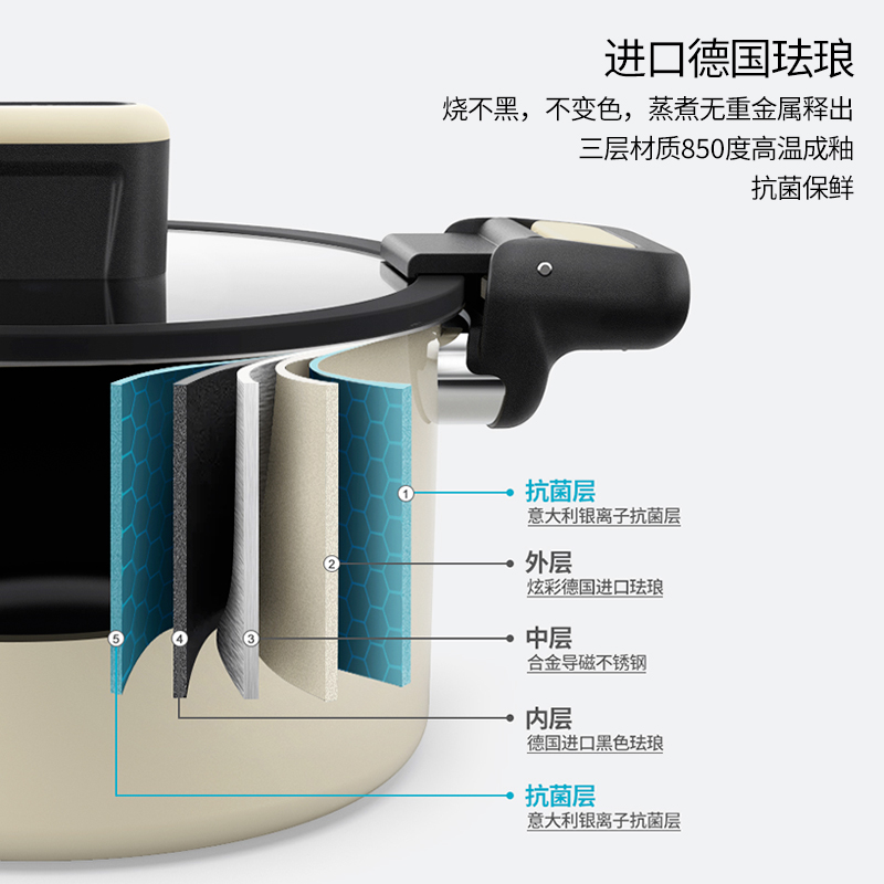 Germany imported enamel milk rice 4L micropressure cooker 20 caliber to send stainless steel silicone soup spoon