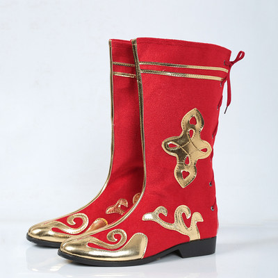 Mongolian boots Tibetan dance performance clothing women's new 56 ethnic minority stage long tube shoe cover performance