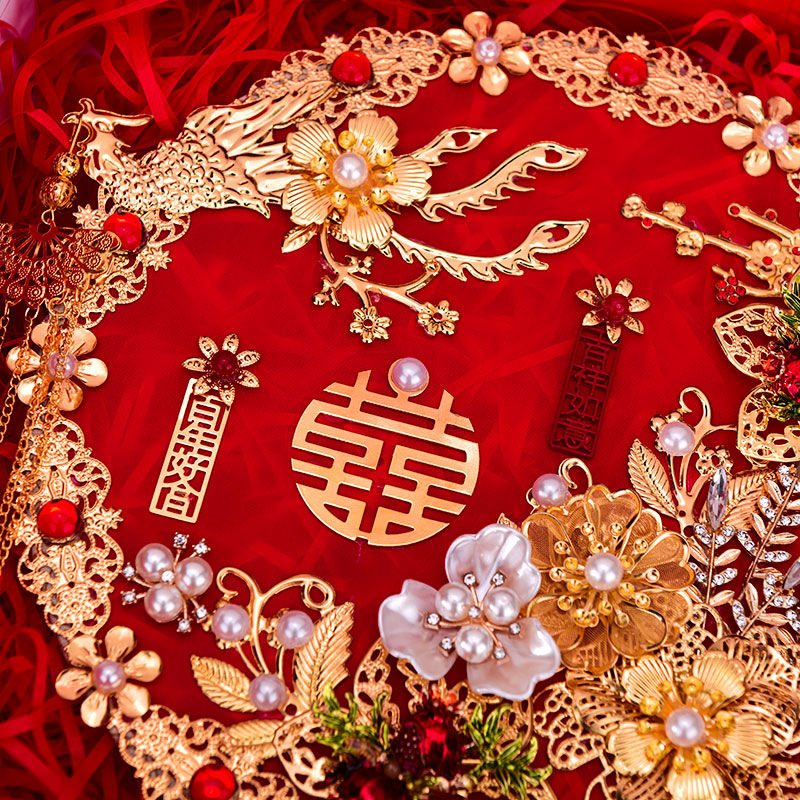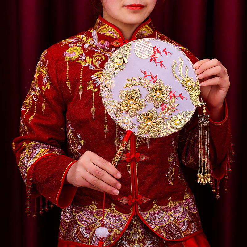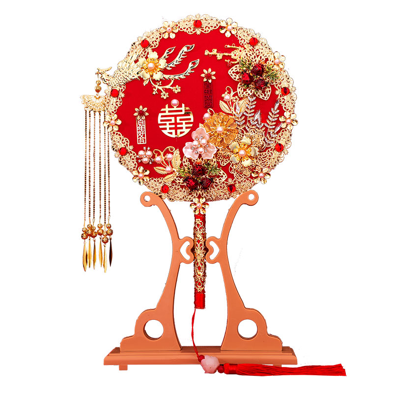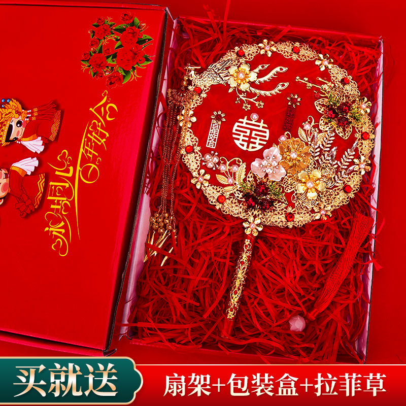 Red Noodles Golden Phoenix Auspicious Bride Round Fan Frame 1 Dress Red Noodles Icing On the Bride Round Fan Frame 1 Dress Red Face Brocade Embroidered Without Central Bride Round Fan Frame 1 Dress Red Face One