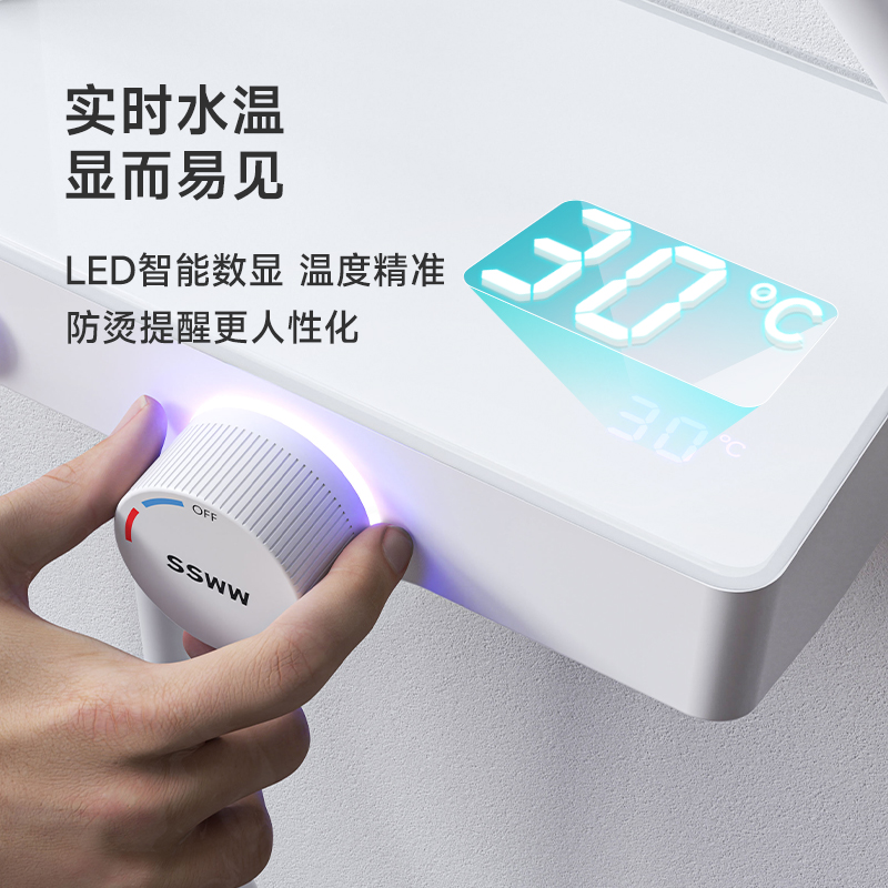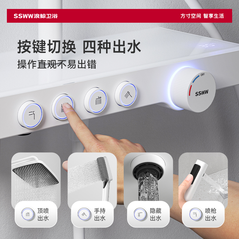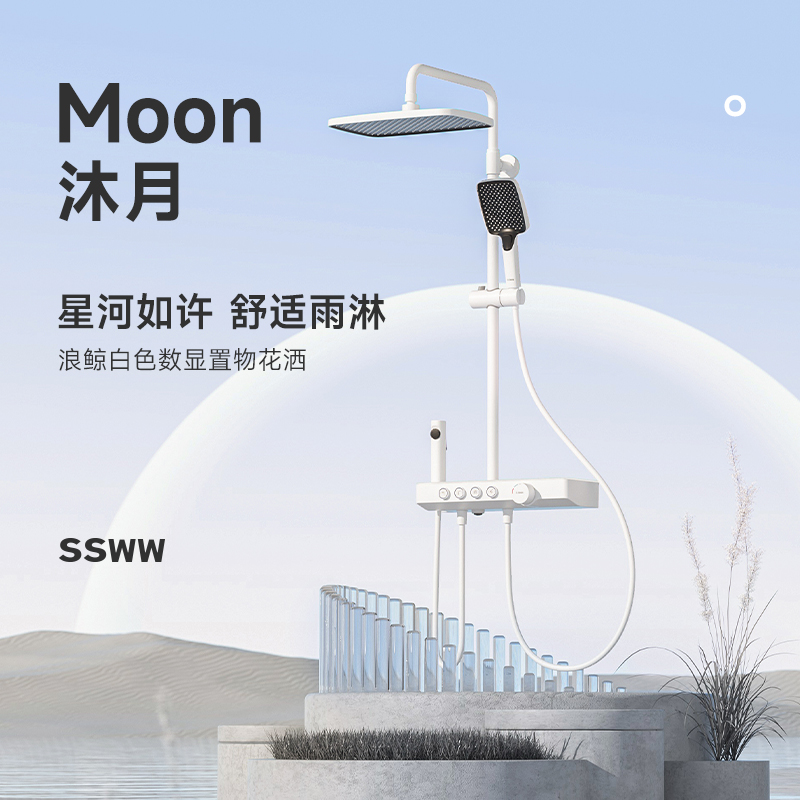 Wave whale white digital display shower set bathroom powder room booster shower head rain shower