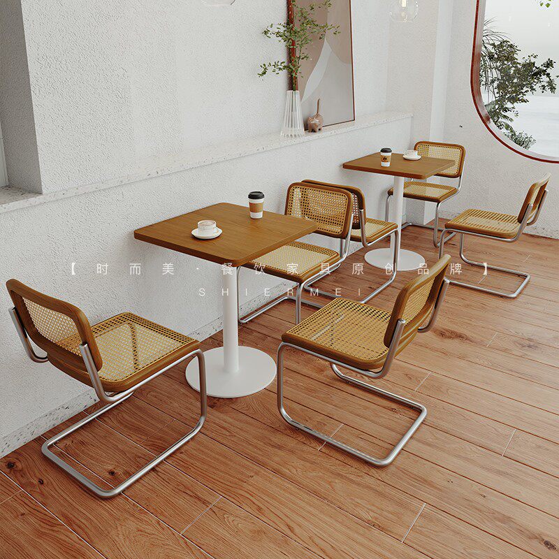 Cafe Dining Room Japanese Rattan Chair Leisure Net Red Designer Chair Milk Tea Dessert Cold Drink Shop Dining Table and Chair Combination