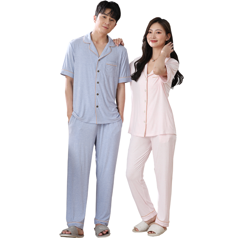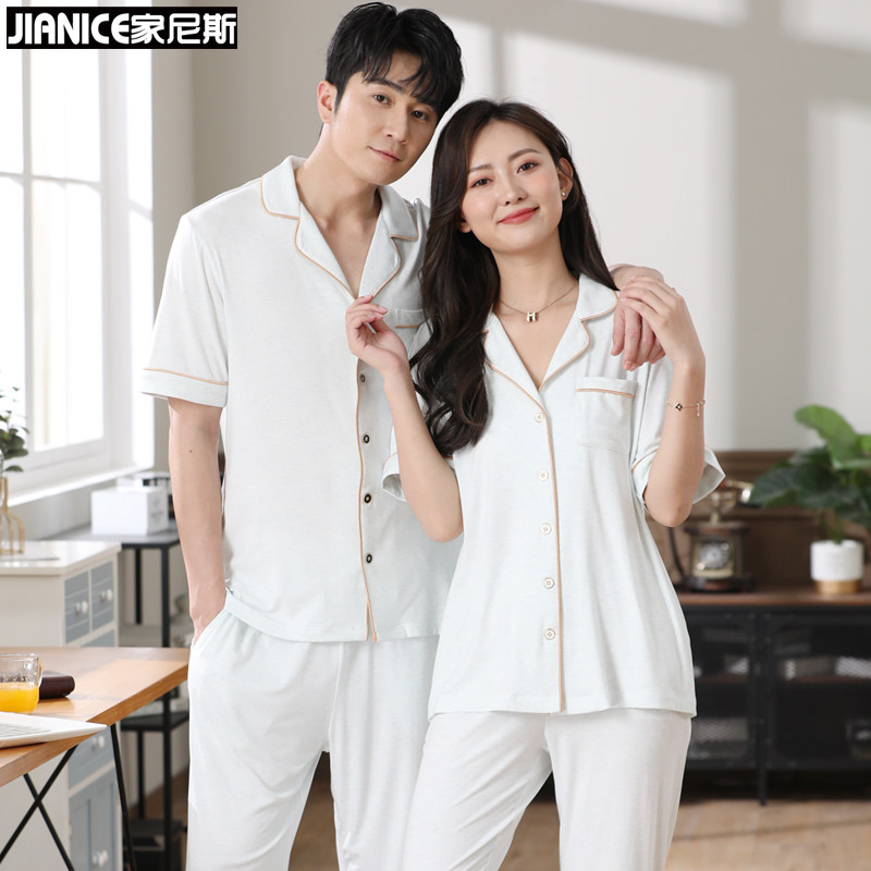 Couple pajamas summer thin modal ice silk short-sleeved trousers suit large size can be worn outside men and women solid color home clothes