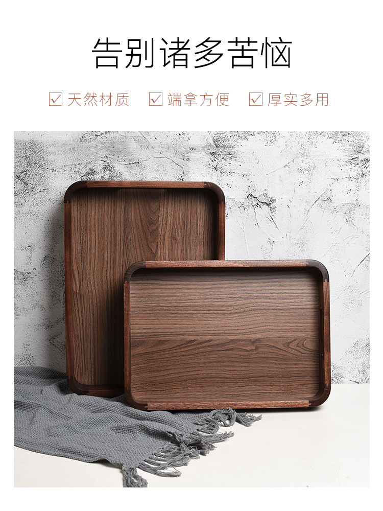 Day Style Black Walnuts Wooden Care Tray Wood Rectangular Home Solid Wood Dinner Plate Snack Tray Tea Cup Wooden Tray Tea Tray