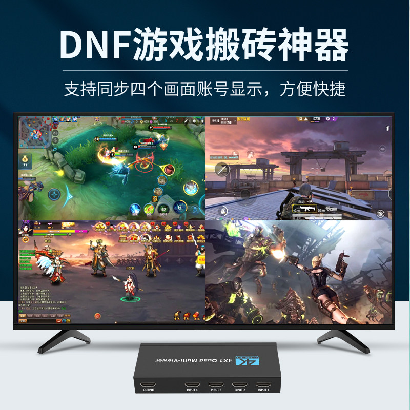 Split screen four in and one out 4K computer hdmi screen splitter 4-port seamless switcher with remote control DNF