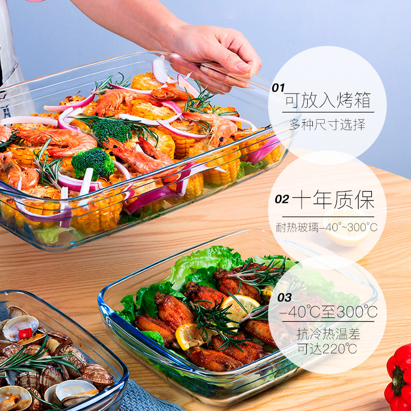 (self-employed) glass baking tray microwave oven rectangular steamed tray grilled fish dishes Steamed Oven Special Utensil Seafood Pan-Taobao