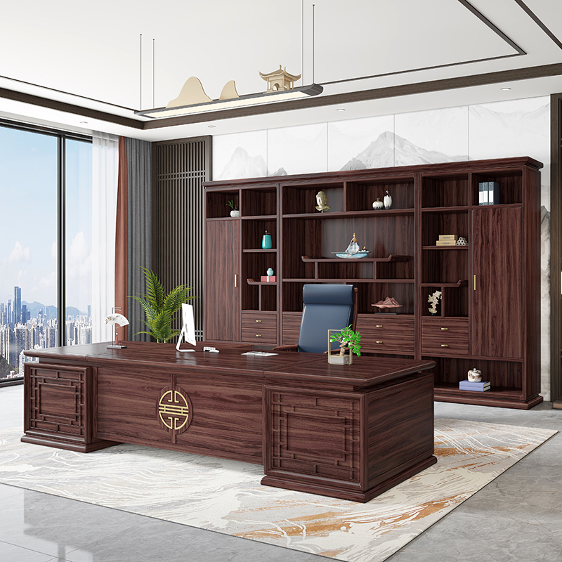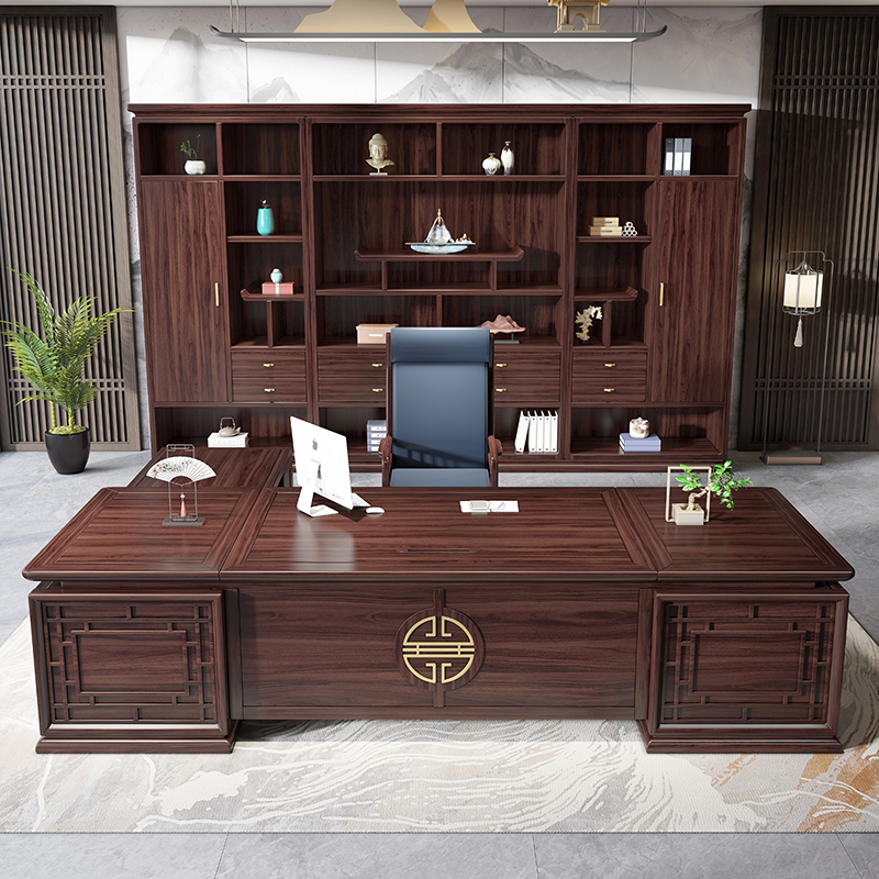 New Chinese style solid wood desk combination chairman office atmosphere ebony wood boss desk simple modern furniture