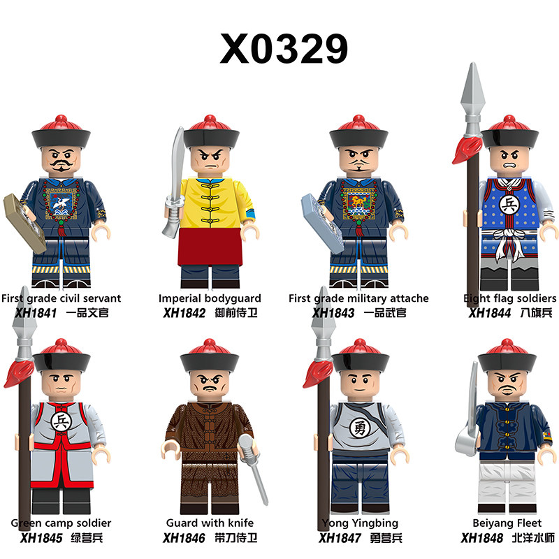 Black dark brown X0329 Qing soldiers 8 models XH1841 First-grade civilian XH1842 Imperial guard XH1843 First-grade military officer XH1844 Eight flag soldiers XH1845 Green