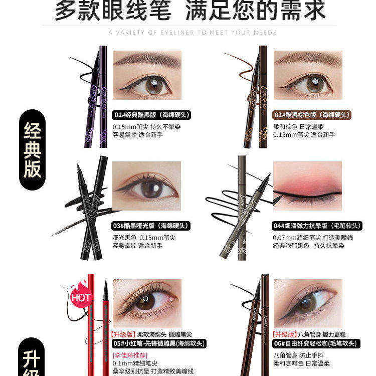 Pioneer micro-carved eyeliner perseverance lasting eyeliner smooth elastic eyeliner free fiber eyeliner water pen free fiber eyeliner cool black quick-drying eyeliner