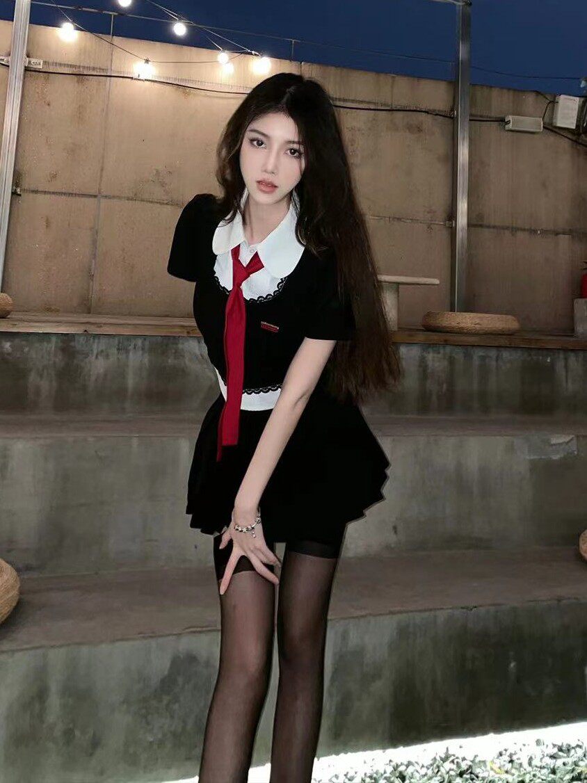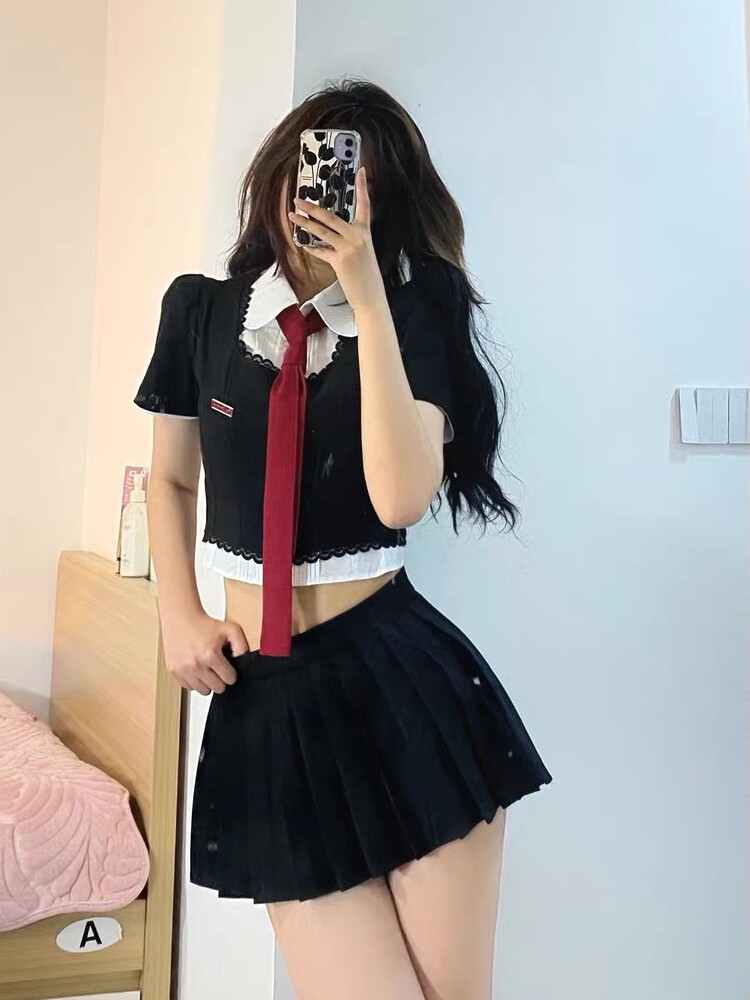 American hot girl college style uniform pleated skirt suit pure desire waist short-sleeved shirt Russian school uniform three-piece suit