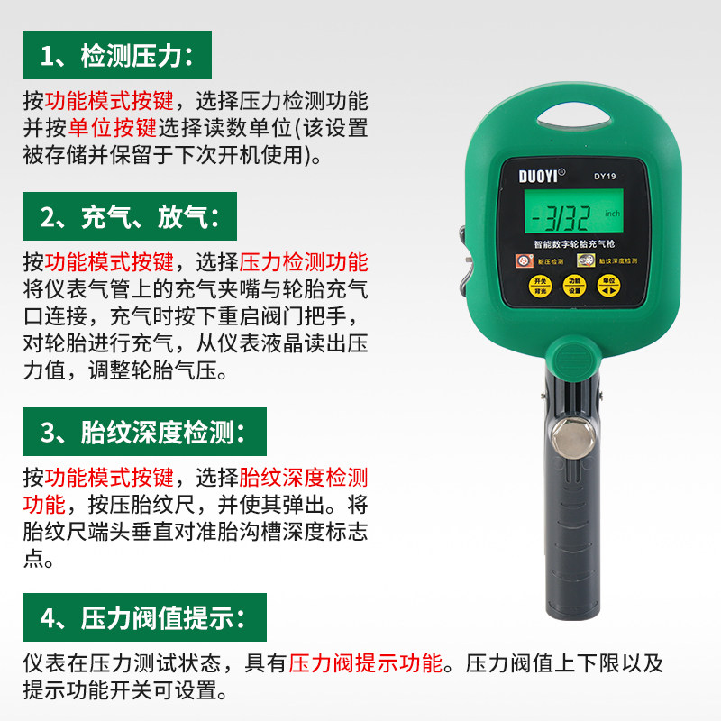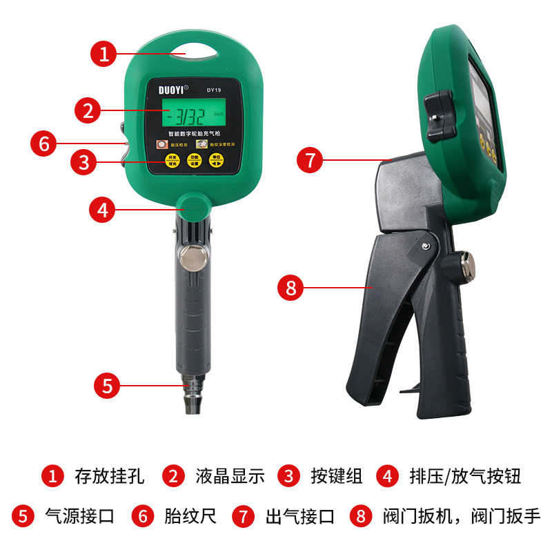 more than one DY19 tire inflation gun high precision wheel tire pressure tire striper depth detection number of car plus air gun