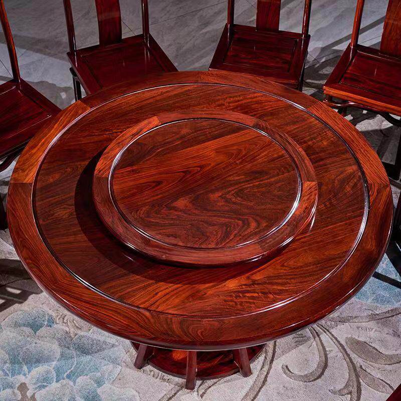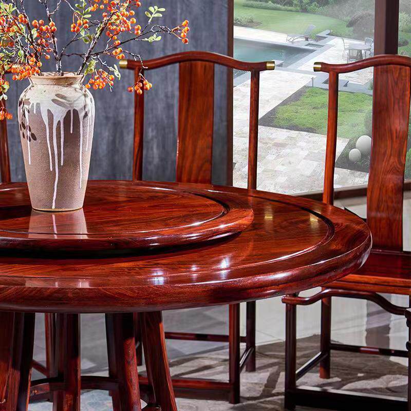 East African acid branch wood round dining table and chair combination mahogany dining table solid wood round dining table dining room new Chinese style small waist turntable
