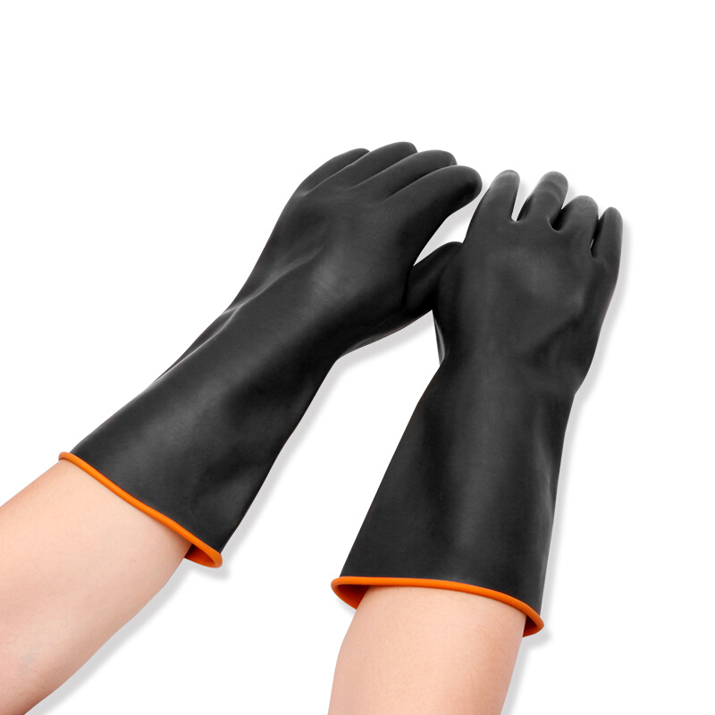 The person also lengthened the thickened industrial acid-resistant pH glove anti-slip corrosion protection chemical protection rubber home labor protection gloves