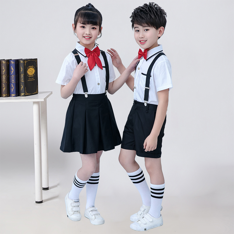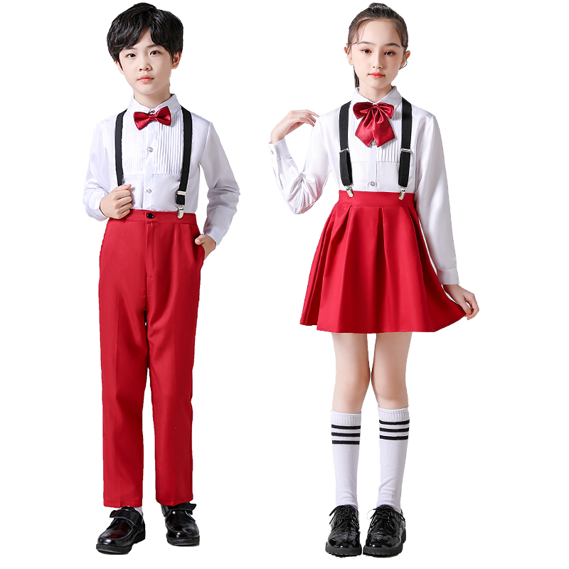 Women's red skirt Long-sleeved men's red trousers Long-sleeved women's black skirt Long-sleeved men's black trousers Long-sleeved women's red skirt Short-sleeved men's red shorts Short-sleeved women's black skirt Short-sleeved men's black shorts