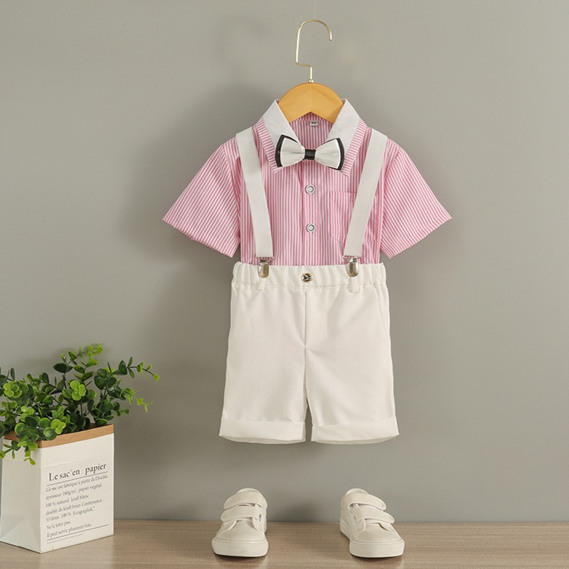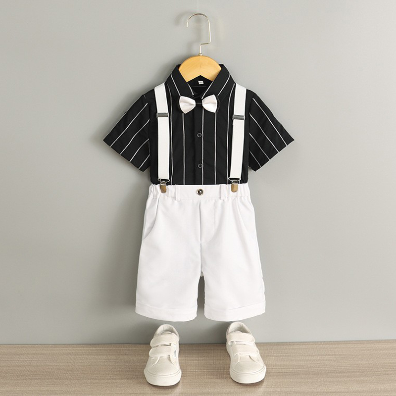 White Shirt Black Pants Black Dot Bow Tie Baby Bag Pink Striped Shirt White Pants Bow Tie Baby Bag Blue Striped Shirt White Pants Bow Tie Baby Bag Black Striped Top White Pants Bow Tie Baby Bag