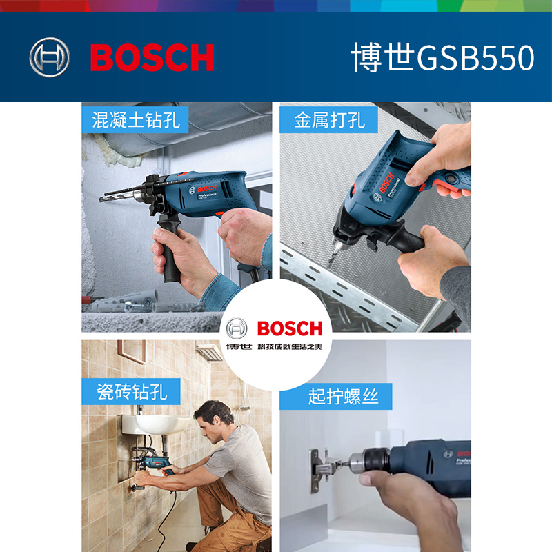Bosch bosch shock drill 220v plug-in electric hand electric drill multifunction home power tool suit GSB550
