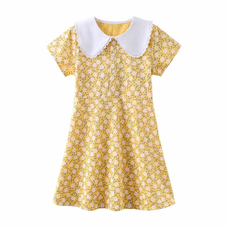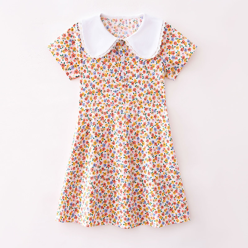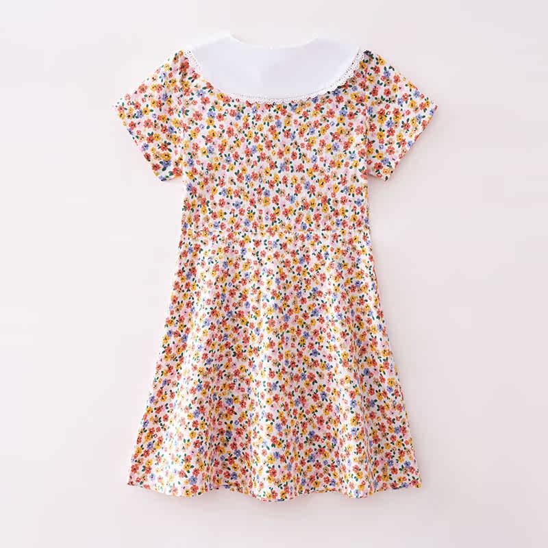 Girl Dress 2022 new kid high waist long sleeve short sleeve broken flower tide for pure cotton short skirt